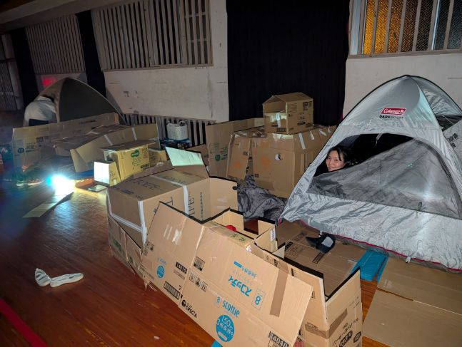 桜丘東校区あいご会では、令和7年11月1日(土)2日(日)にかけて、小学校の体育館で避難所体験会を実施しました。