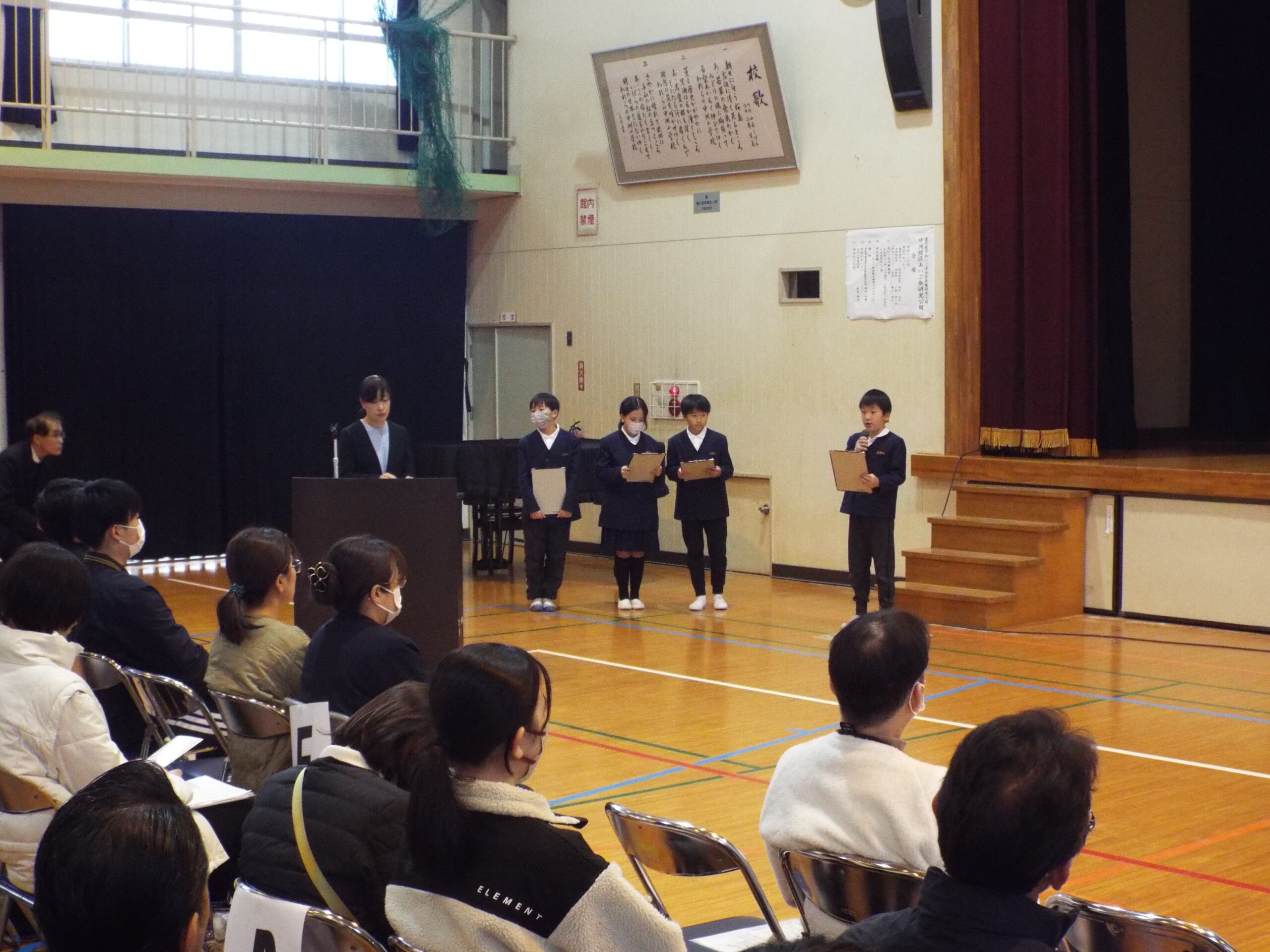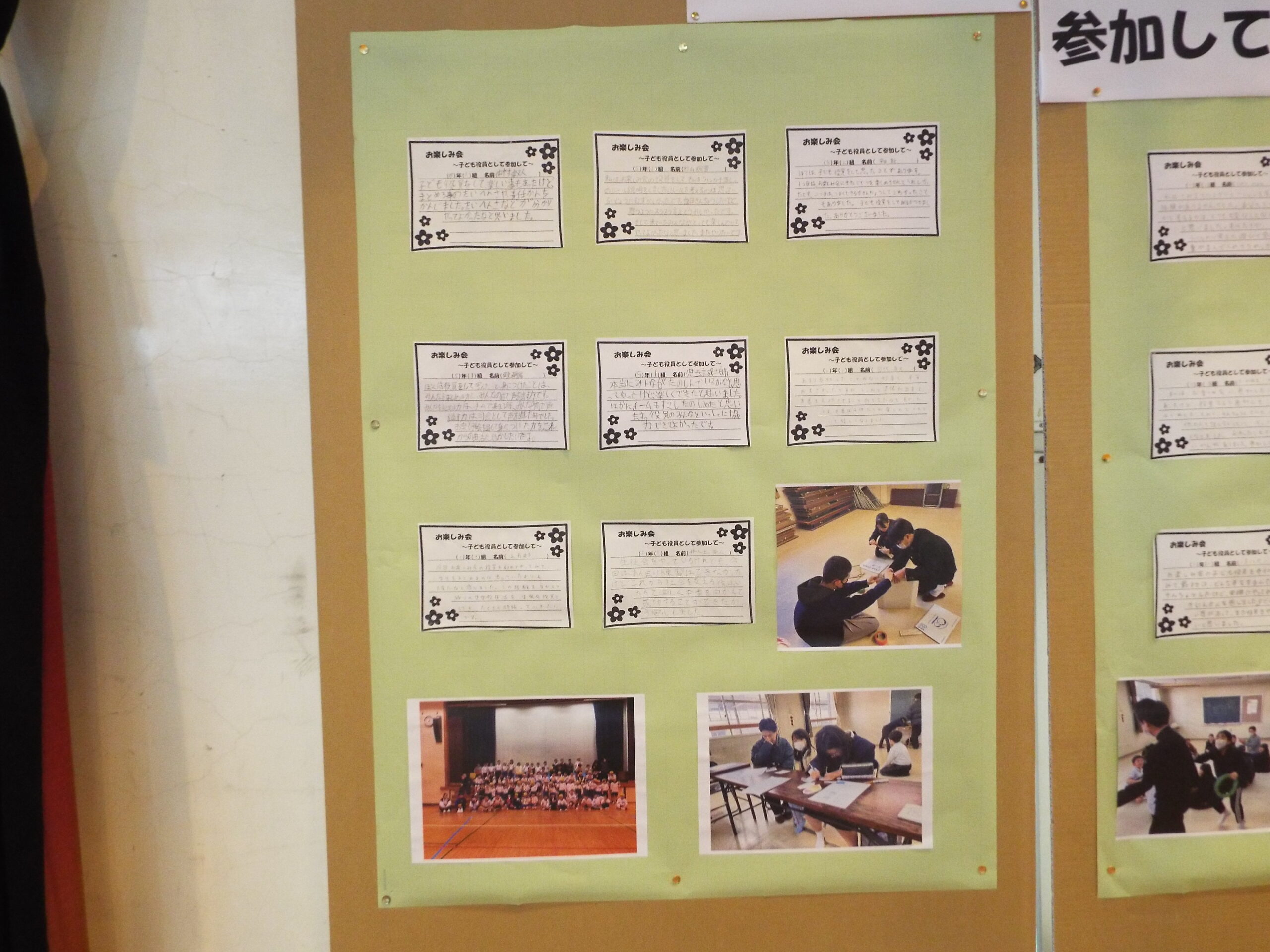 開会行事のあと、中洲校区あいご会及び単位あいご会の活動報告がありました。子どもたち10名が校区や単位あいご会の活動を元気よく発表してくれました。あいご講座、せごどんのえんこ、餅つき体験などさまざまな活動がありました。あいごお楽しみ会での子ども役員の活躍がとても印象的でした。会場には子ども役員として参加した感想が展示されており、子どもたちがすばらしい経験を積み、あいご会の良さや大切さに気づいていることに驚きました。