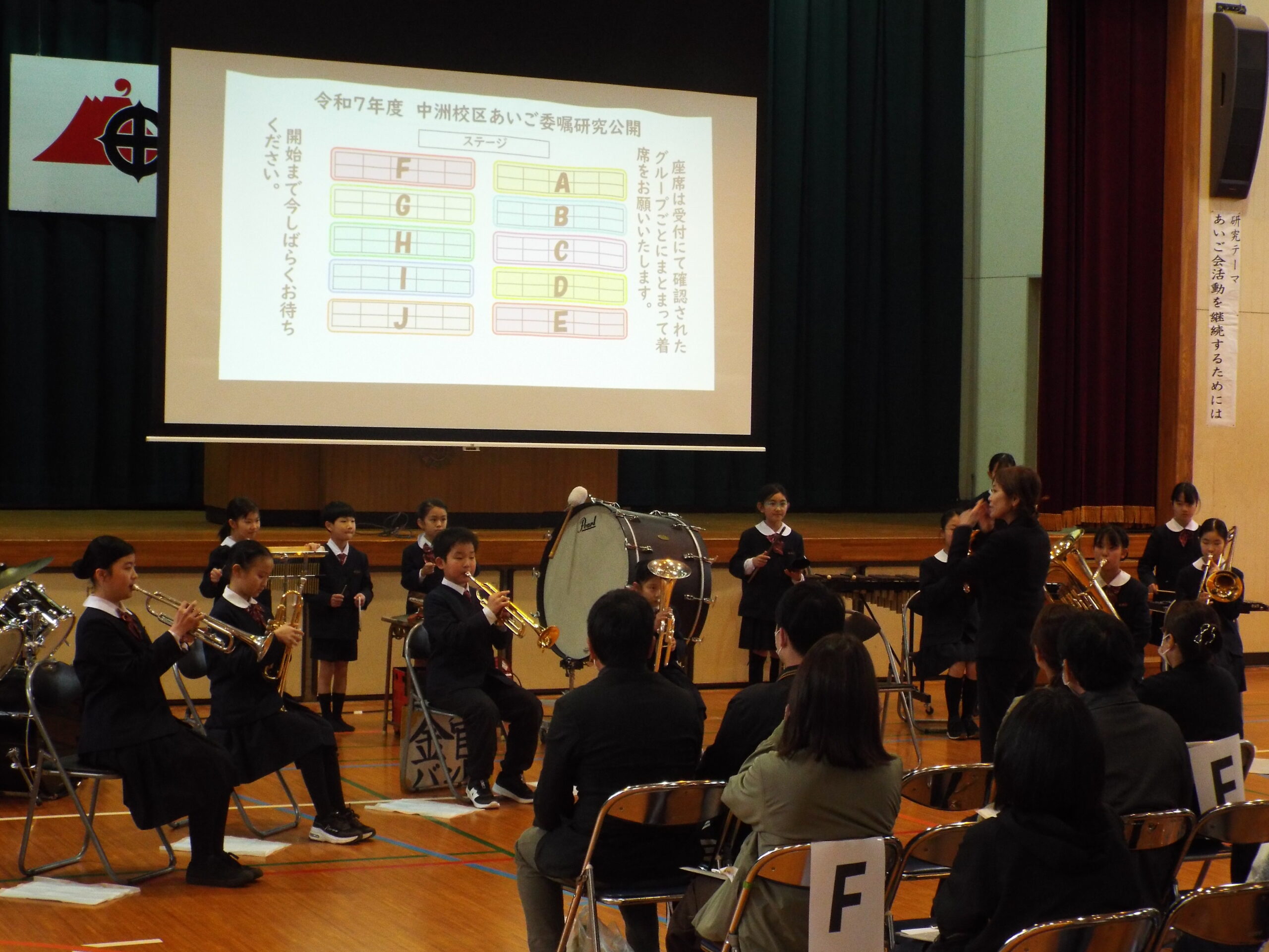 令和8年2月14日(土)に中洲小学校であいご会連合会委嘱中洲校区研究公開が開催されました。約100名のあいご会関係者が参加しました。