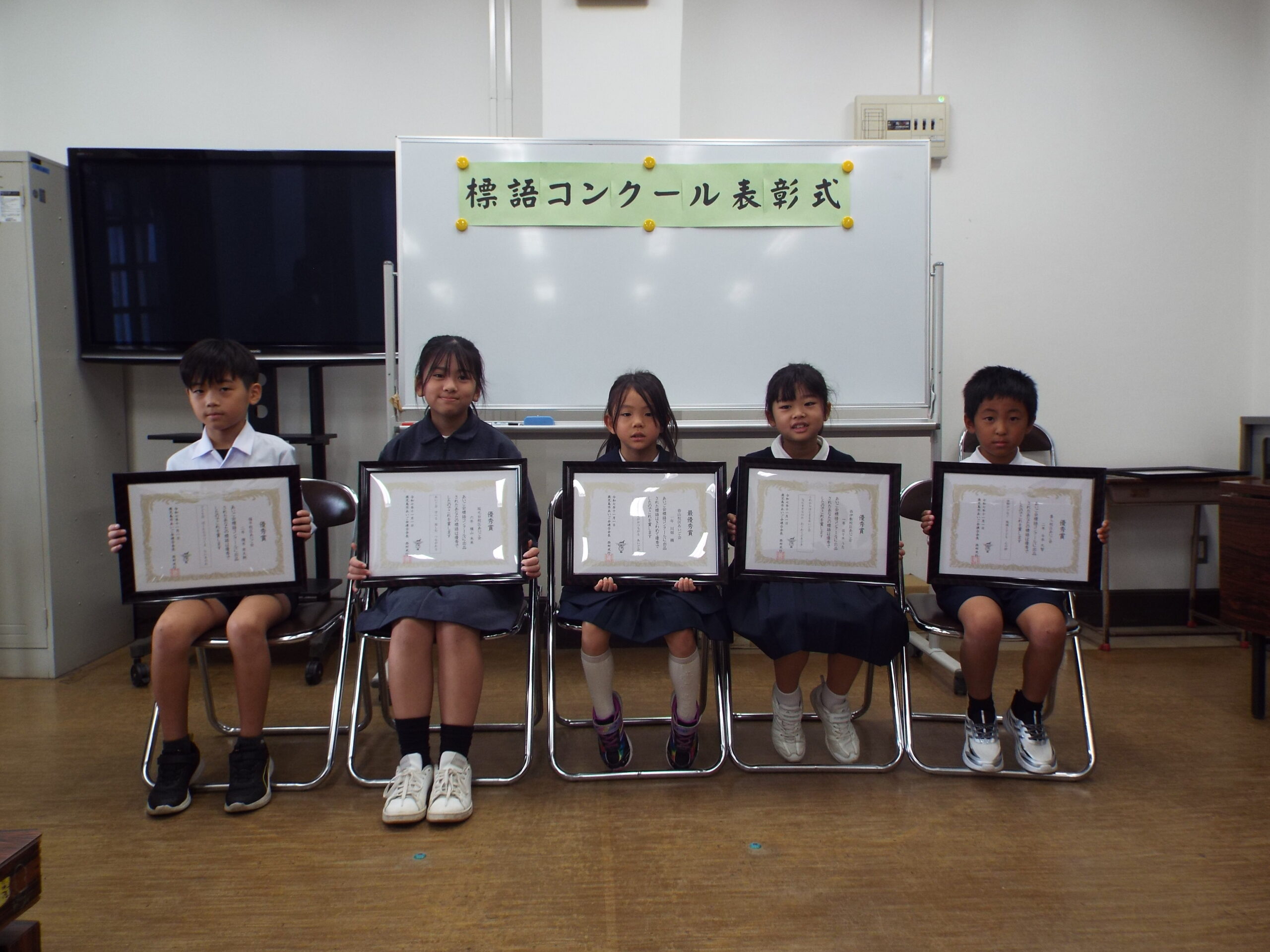 本年度初めて標語コンクールを行いました。35校区から129点の応募があり、10月9日(木)に審査会を終え、最優秀賞、優秀賞、特選、入選などを決定しました。すばらしい標語がたくさん寄せられました。11月1日(土)には最優秀賞と優秀賞の家族を迎えて表彰式を行いました。 入賞者一覧新 標語入賞作品 表彰式での記念撮影